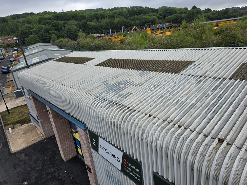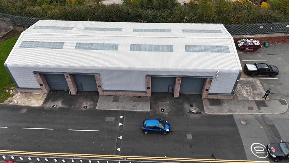 Three units had reached the end of their serviceable life in terms of cladding and required refurbishment. The roofing system was upgraded using Drisline, with the gutters also relined to ensure improved performance and longevity. Rooflights were replaced with step-safe units to enhance safety and durability. The cladding was treated and sprayed with Zinsser AllCoat to provide a high-quality protective finish, while the brickwork was carefully repointed to restore structural integrity and appearance. Additionally, external floodlights were upgraded to new PIR LED units for improved energy efficiency and security, and the emergency exit was replaced with a new door to meet current standards.